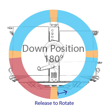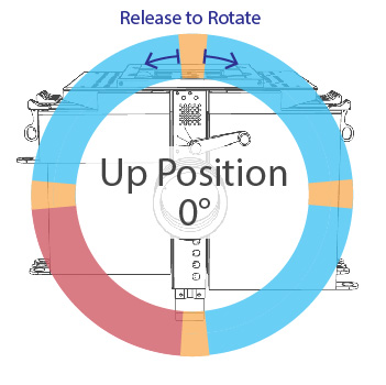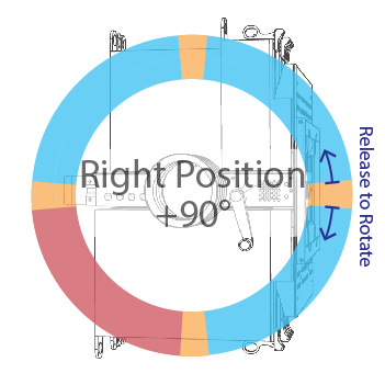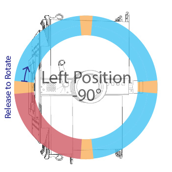- Lock at arbitrary positions anywhere along the 280° of rotation, including Up 0°, Left -90°, Right +90°, and Down 180°. Left -90° is a new rotational position.