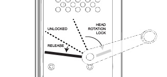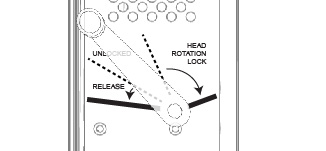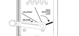 | To Release: Rotate the lever by pulling the handle counterclockwise from Unlock position and rotating the Test Head out of the safety zone. If it does not release, rotate the Test Head a few degrees in the opposite direction before rotating in the desired direction. The handle should be let go while once exiting the safety zone until the next safety zone is encountered. Let go of the handle to return the lever to Unlocked position. |