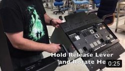 | The lock position holds the tilt and rotation of the Test Head into any available angle. The lever should remain in this position when docking, using the Diag/Cal Interface plate, or moving the infrastructure. Adjust the tilt to approximate level before locking. Use the Level feature of the Measure App on the RI eManual (iPad mini) to position the Test Head while locking. |