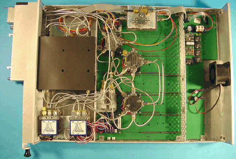 Notice that the reflectometers that are created by special broadband microwave couplers are mounted in a compact block that is temperature controlled with the cables and switch paths of matched phase lengths. The oven effect of the closed Test Set provides the stable environment needed to maintain the RF calibration longevity. To minimize the temperature sensitivity of the Test Set, that is one of the major contributors to calibration drift, all of the microwave testing components are enclosed in a proportionally temperature controlled oven elevated to 38°C. The oven heated RF components allows for our unparalleled 12 month calibration cycle.
