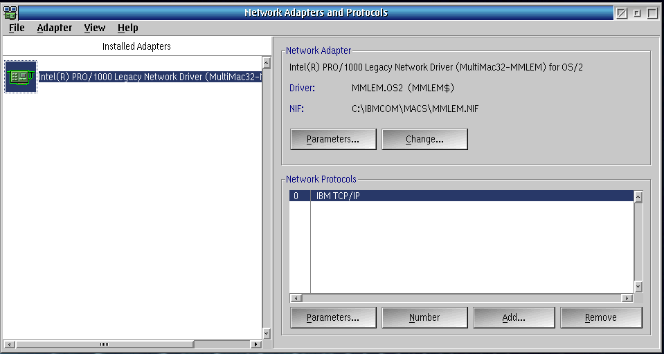 - Confirm that the Intel(R) PRO/1000 Legacy Network Driver (MultiMac21-MMLEM) for OS/2e is currently installed. (See Figure 2)