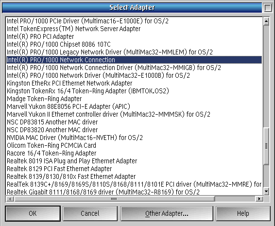 - For VirtualBox and some EPC mother boards, choose Intel(R) PRO/1000 Network Connection to highlight that entry and choose OK from the Select Adapter prompt. (See Figure 4)
