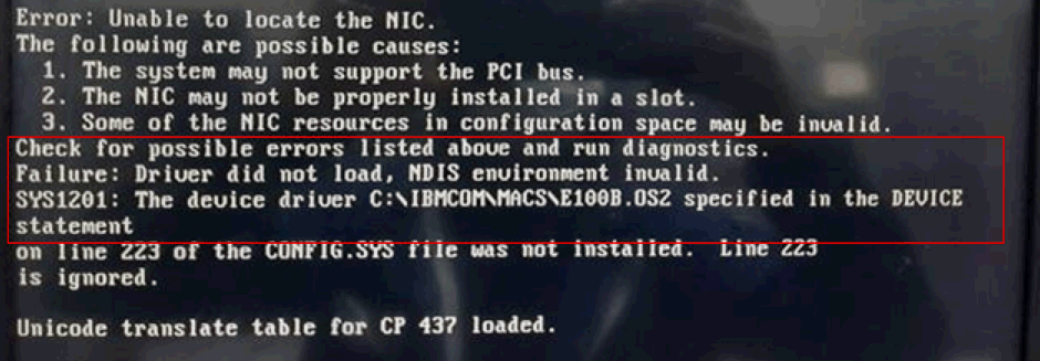 Figure 7: Error: Unable to locate the NIC