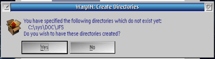 - Choose Next three (3_ times, then answer Yes to the prompt to Create Directories.